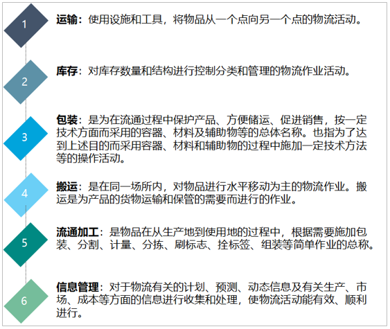 中國(guó)物流行業(yè)起步較晚,隨著國(guó)民經(jīng)濟(jì)的飛速發(fā)展,中國(guó)物流行業(yè)保持較快增長(zhǎng)速度,物流體系不斷完善,行業(yè)運(yùn)行日益成熟和規(guī)范。具體內(nèi)容包括以下幾個(gè)方面:用戶(hù)服務(wù)、需求預(yù)測(cè)、訂單處理、配送、存貨控制、運(yùn)輸、倉(cāng)庫(kù)管理、工廠和倉(cāng)庫(kù)的布局與選址、搬運(yùn)裝卸、采購(gòu)、包裝、情報(bào)信息。